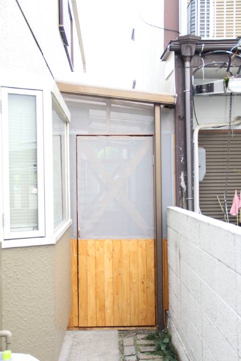 I様のお宅では猫ちゃんを飼っています。台所の扉にペットドアを取付け、外で猫ちゃんが遊べるようにキャットルームを作りました。 家の中以外に広い遊び場が出来ましたね。